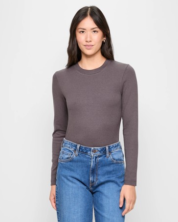 Australian Cotton Long Sleeve Scoop Neck Ribbed T-Shirt