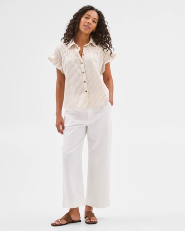 Linen/Cotton Blend Ruffle Sleeve Blouse