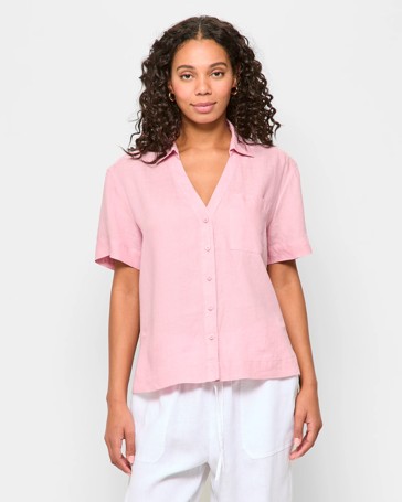European Linen 3/4 Puff Sleeve Femme Popover Top
