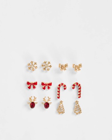Christmas 4 Pack Pave Hoop Charm Earrings
